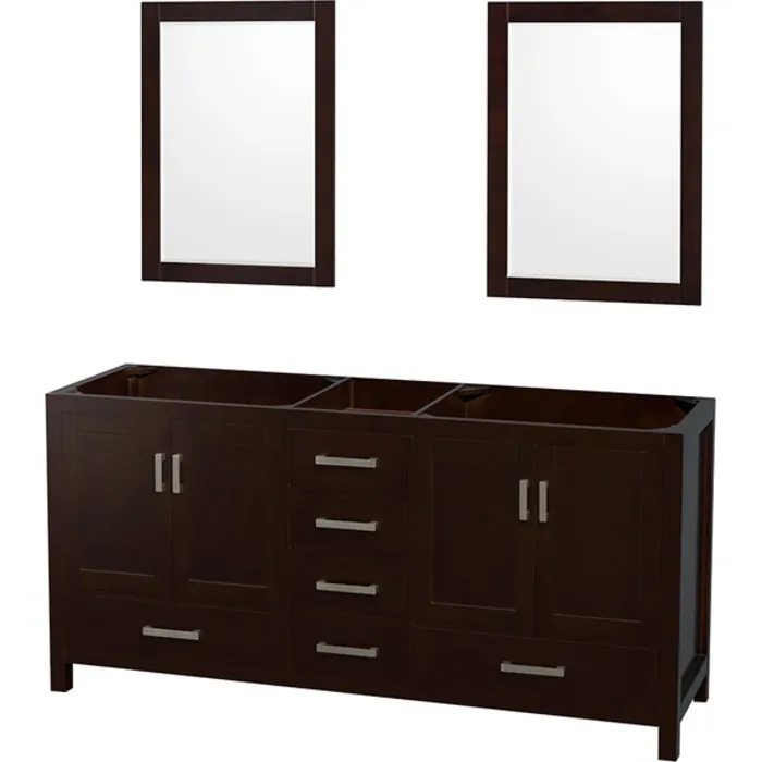 Wyndham Collection WCS141472DESCXSXXM24 72 In. Double Bathroom Vanity In Espresso, No Countertop, No Sinks, And 24 In. Mirrors