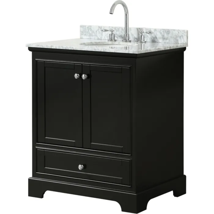 Wyndham Collection 30 Inch Single Bathroom Vanity In Dark Espresso, White Carrara Marble Countertop, Undermount Oval Sink, And No Mirror WCS202030SDECMUNOMXX