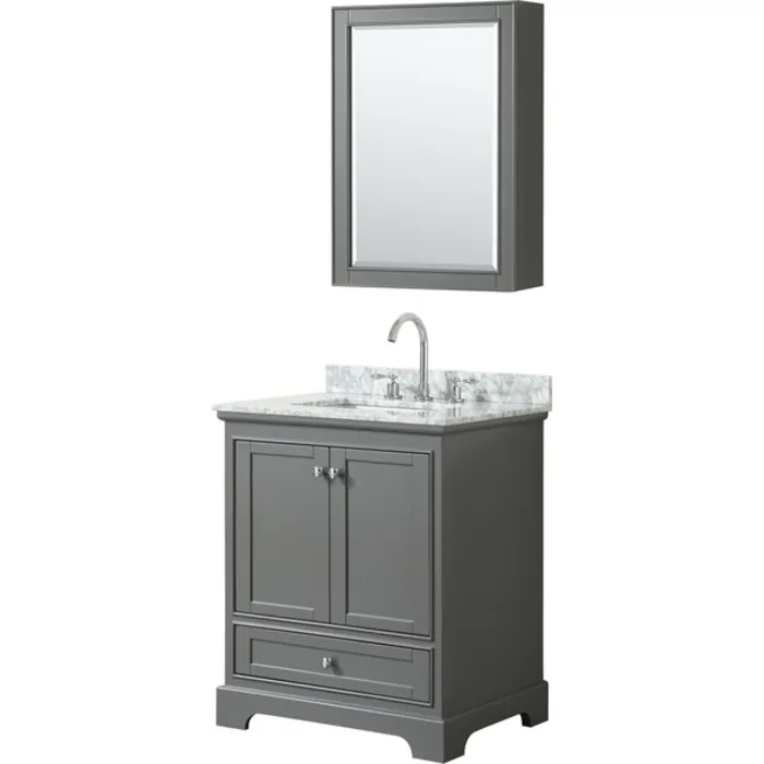 Wyndham Collection 30 Inch Single Bathroom Vanity In Dark Gray, White Carrara Marble Countertop, Undermount Square Sink, And Medicine Cabinet WCS202030SKGCMUNSMED