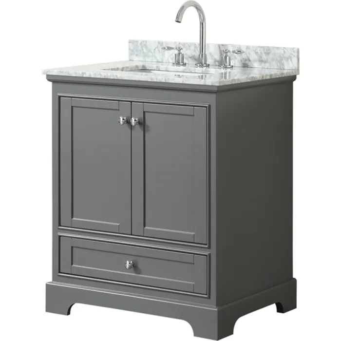 Wyndham Collection 30 Inch Single Bathroom Vanity In Dark Gray, White Carrara Marble Countertop, Undermount Square Sink, And No Mirror WCS202030SKGCMUNSMXX