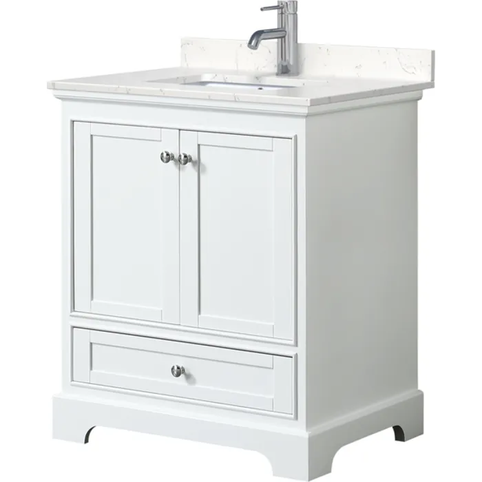 Deborah 30 Inch Single Bathroom Vanity in White, Light-Vein Carrara Cultured Marble Countertop, Undermount Square Sink, No Mirror