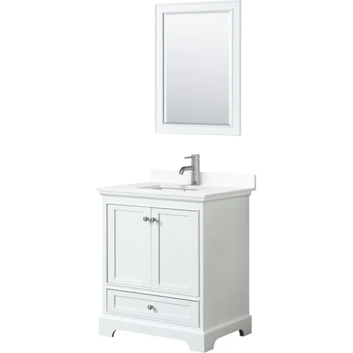 Deborah 30 Inch Single Bathroom Vanity in White, White Cultured Marble Countertop, Undermount Square Sink, 24 Inch Mirror