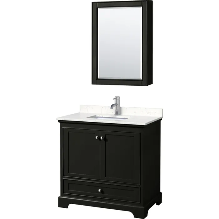 Deborah 36 Inch Single Bathroom Vanity in Dark Espresso, Light-Vein Carrara Cultured Marble Countertop, Undermount Square Sink, Medicine Cabinet