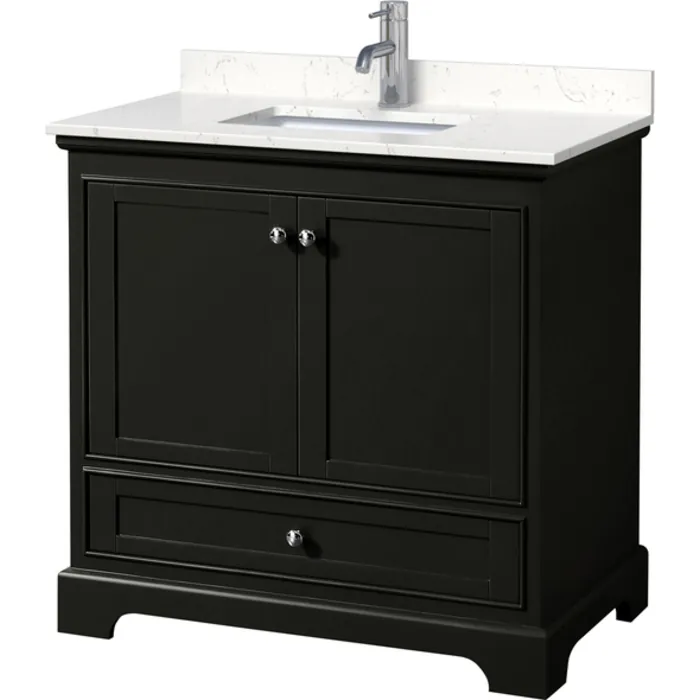 Deborah 36 Inch Single Bathroom Vanity in Dark Espresso, Light-Vein Carrara Cultured Marble Countertop, Undermount Square Sink, No Mirror