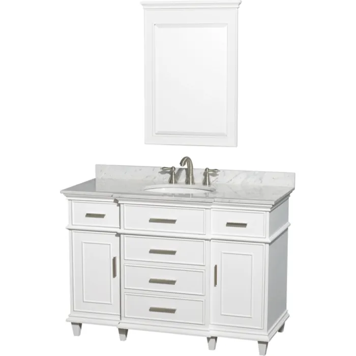 Wyndham Collection WCV171748SWHCMUNRM24 48 In. Single Bathroom Vanity In White With White Carrera Marble Top With White Undermount Oval Sink And 24 In. Mirror