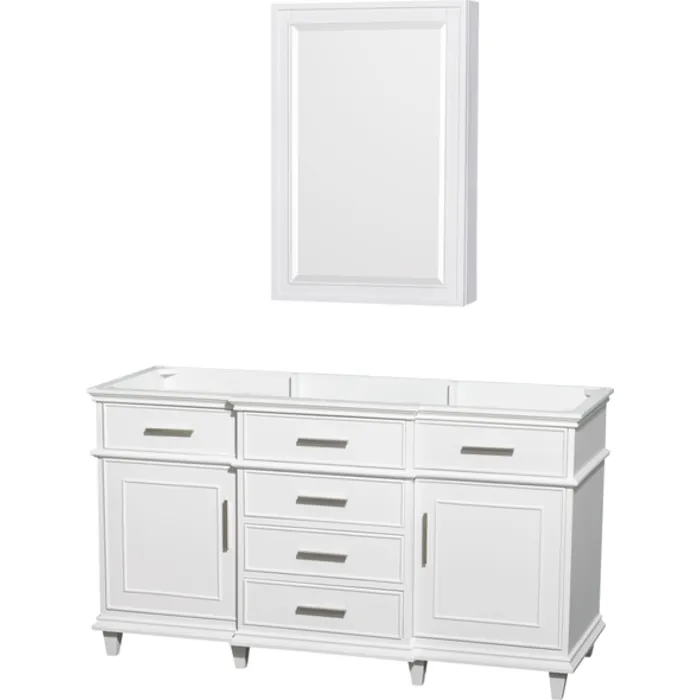 Wyndham Collection 60 Inch Single Bathroom Vanity In White, No Countertop, No Sink, 24 Inch Medicine Cabinet WCV171760SWHCXSXXMED