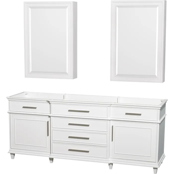 Wyndham Collection 80 Inch Double Bathroom Vanity In White, No Countertop, No Sinks, 24 Inch Medicine Cabinets WCV171780DWHCXSXXMED