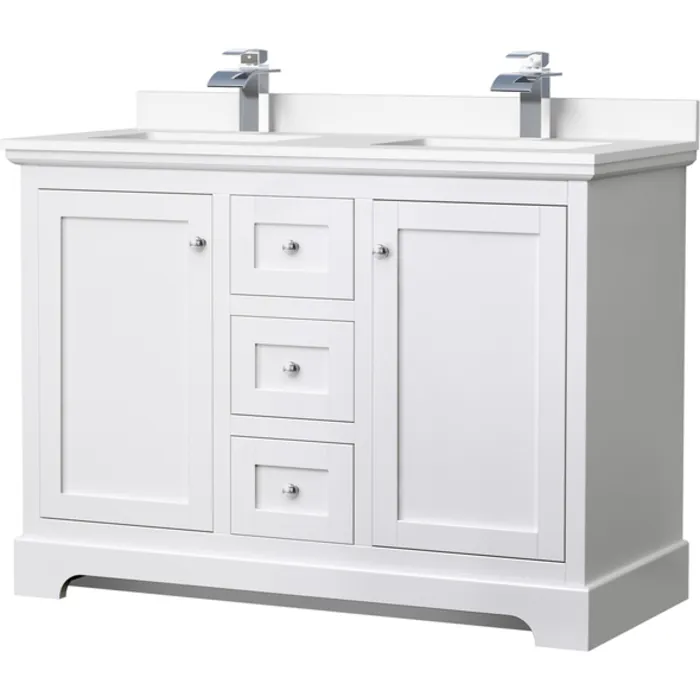 Avery 48 Inch Double Bathroom Vanity in White, White Cultured Marble Countertop, Undermount Square Sinks, No Mirror