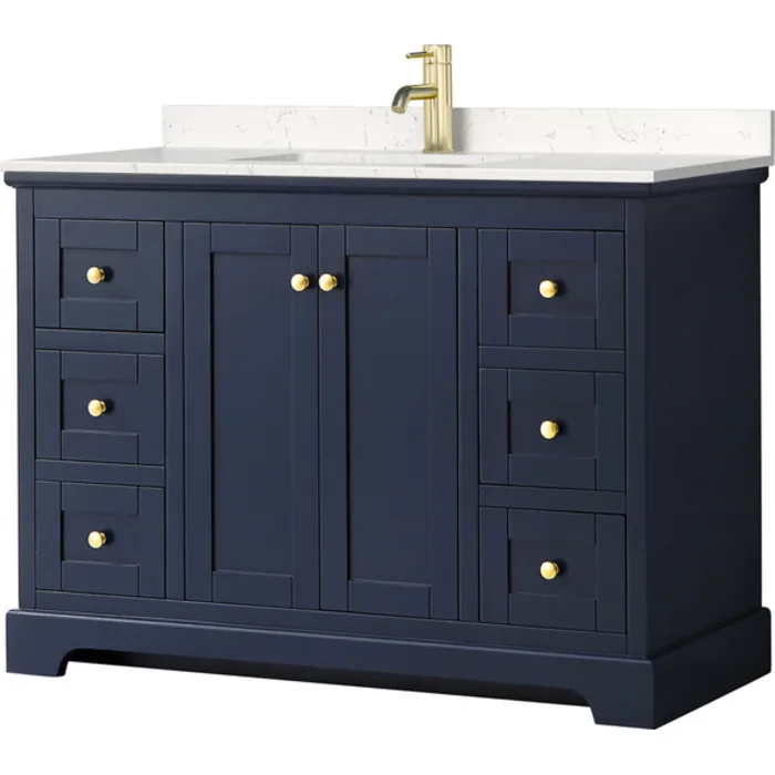 Avery 48 Inch Single Bathroom Vanity in Dark Blue, Light-Vein Carrara Cultured Marble Countertop, Undermount Square Sink, No Mirror