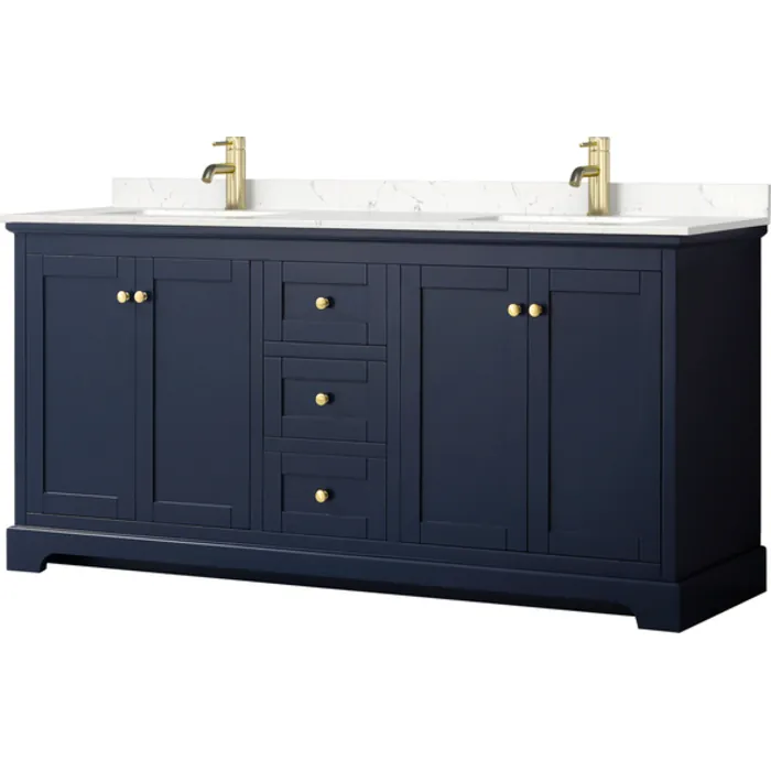 Avery 72 Inch Double Bathroom Vanity in Dark Blue, Light-Vein Carrara Cultured Marble Countertop, Undermount Square Sinks, No Mirror