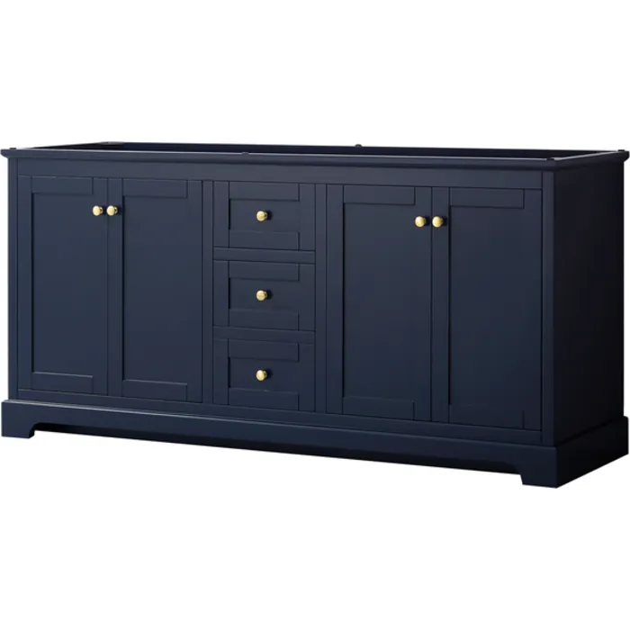 Avery 72 Inch Double Bathroom Vanity in Dark Blue, No Countertop, No Sinks, and No Mirror