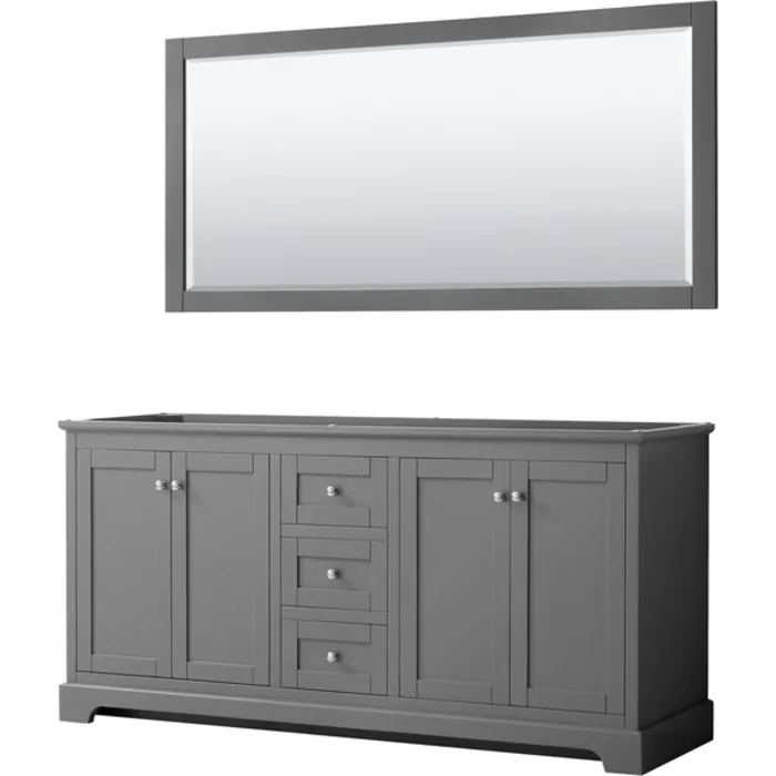 Avery 72 Inch Double Bathroom Vanity in Dark Gray, No Countertop, No Sinks, and 70 Inch Mirror