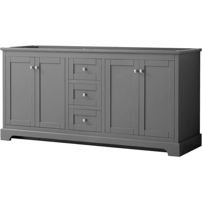 Avery 72 Inch Double Bathroom Vanity in Dark Gray, No Countertop, No Sinks, and No Mirror
