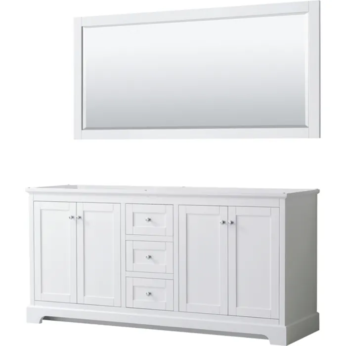 Avery 72 Inch Double Bathroom Vanity in White, No Countertop, No Sinks, and 70 Inch Mirror