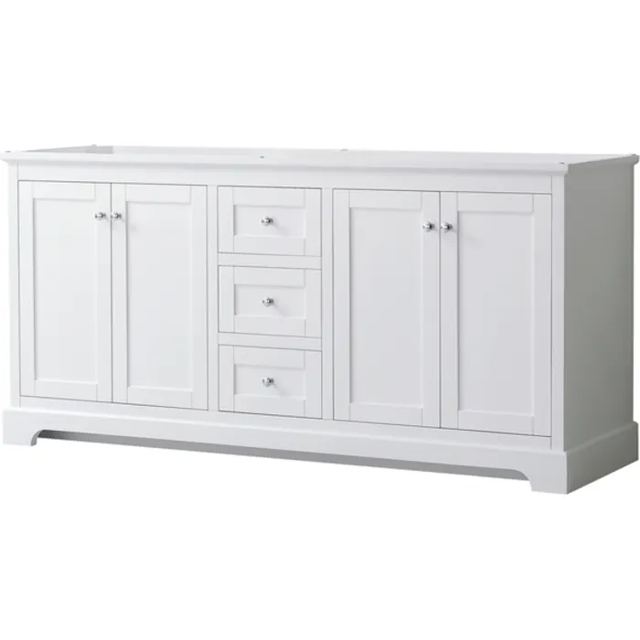 Avery 72 Inch Double Bathroom Vanity in White, No Countertop, No Sinks, and No Mirror