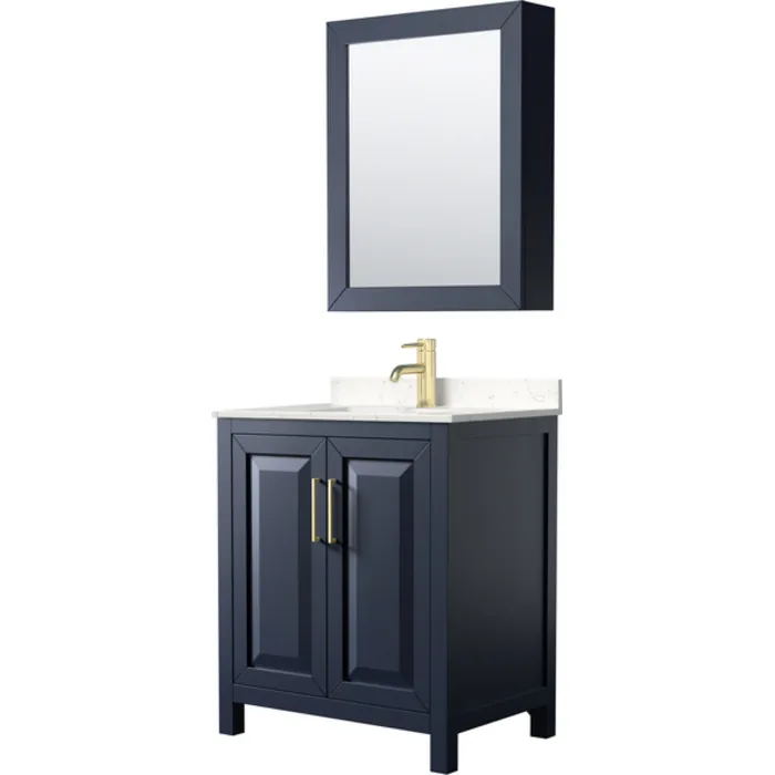 Daria 30 Inch Single Bathroom Vanity in Dark Blue, Light-Vein Carrara Cultured Marble Countertop, Undermount Square Sink, Medicine Cabinet