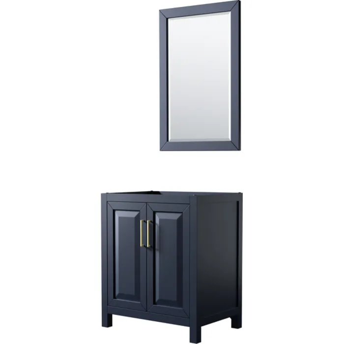 Daria 30 Inch Single Bathroom Vanity in Dark Blue, No Countertop, No Sink, 24 Inch Mirror