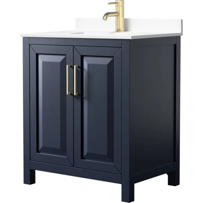 Daria 30 Inch Single Bathroom Vanity in Dark Blue, White Cultured Marble Countertop, Undermount Square Sink, No Mirror
