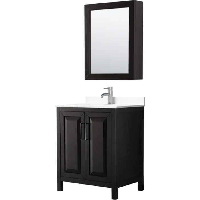 Daria 30 Inch Single Bathroom Vanity in Dark Espresso, White Cultured Marble Countertop, Undermount Square Sink, Medicine Cabinet