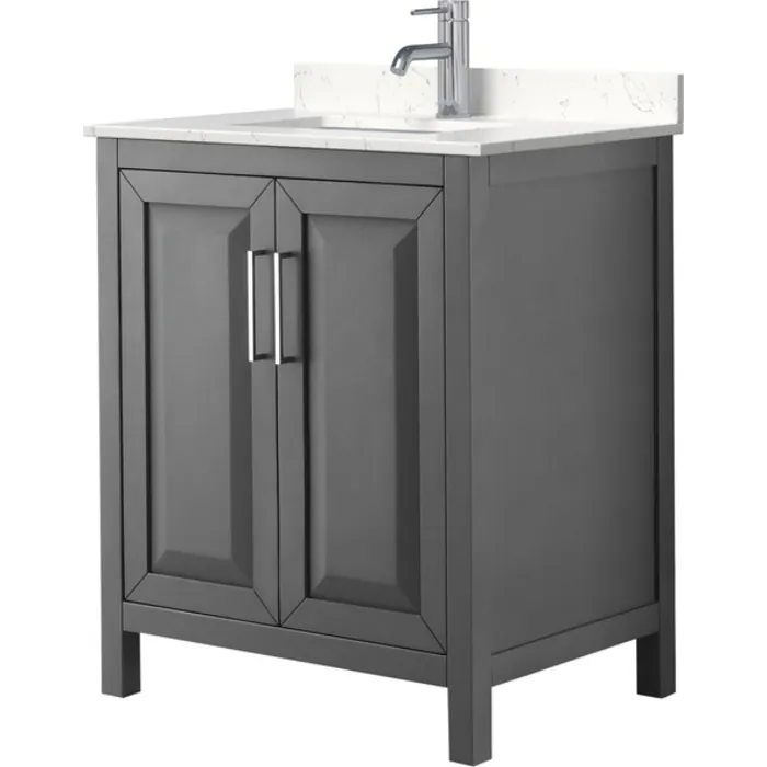 Daria 30 Inch Single Bathroom Vanity in Dark Gray, Light-Vein Carrara Cultured Marble Countertop, Undermount Square Sink, No Mirror