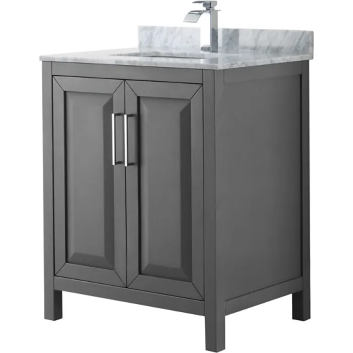 Wyndham Collection 30 Inch Single Bathroom Vanity In Dark Gray, White Carrara Marble Countertop, Undermount Square Sink, And No Mirror WCV252530SKGCMUNSMXX