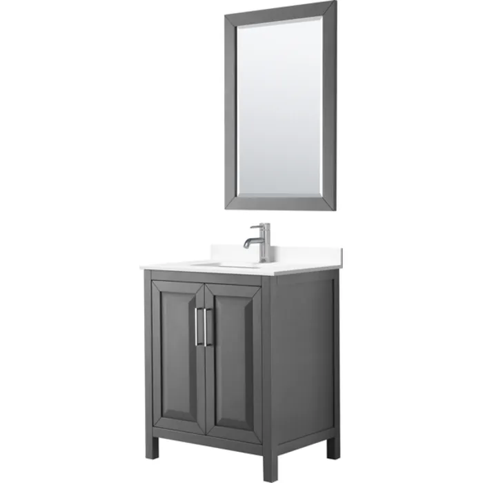 Daria 30 Inch Single Bathroom Vanity in Dark Gray, White Cultured Marble Countertop, Undermount Square Sink, 24 Inch Mirror
