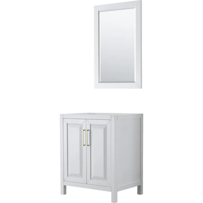 Daria 30 Inch Single Bathroom Vanity in White, No Countertop, No Sink, 24 Inch Mirror, Brushed Gold Trim