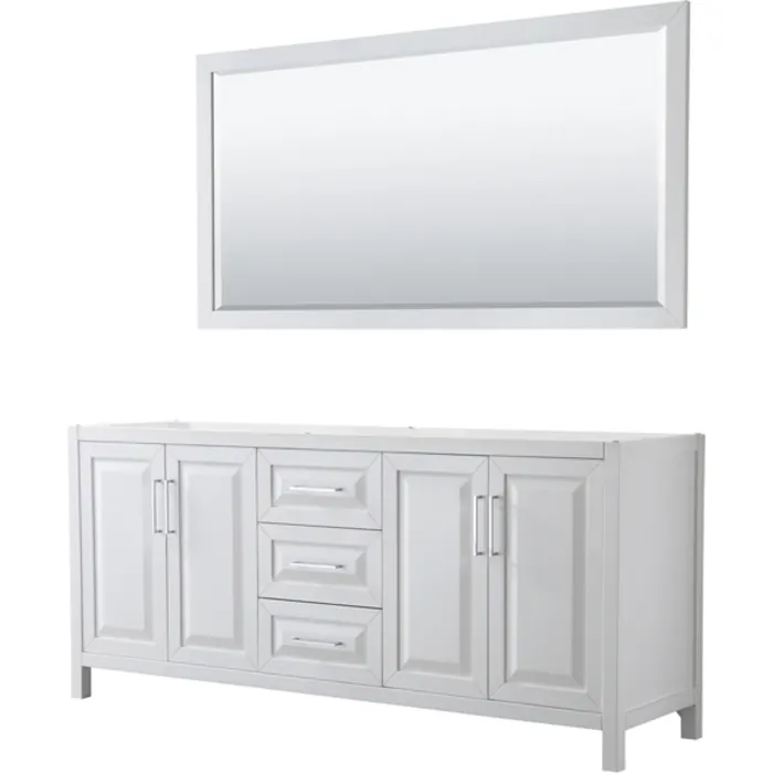 Wyndham Collection 80 Inch Double Bathroom Vanity In White, No Countertop, No Sink, And 70 Inch Mirror WCV252580DWHCXSXXM70