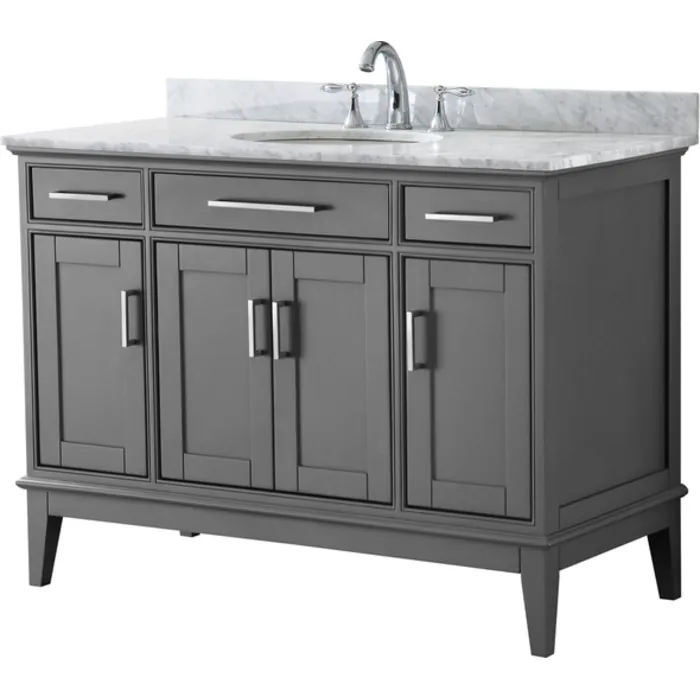 Wyndham Collection 48 Inch Single Bathroom Vanity In Dark Gray, White Carrara Marble Countertop, Undermount Oval Sink, And No Mirror WCV303048SKGCMUNOMXX