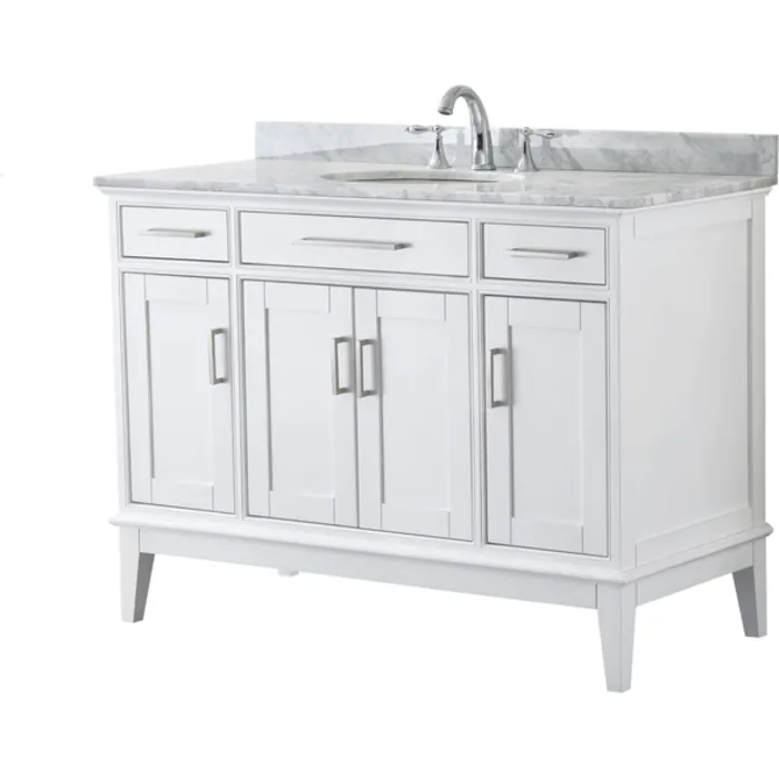 Wyndham Collection 48 Inch Single Bathroom Vanity In White, White Carrara Marble Countertop, Undermount Oval Sink, And No Mirror WCV303048SWHCMUNOMXX