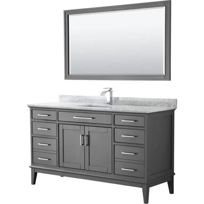 Wyndham Collection 60 Inch Single Bathroom Vanity In Dark Gray, White Carrara Marble Countertop, Undermount Square Sink, And 56 Inch Mirror WCV303060SKGCMUNSM56