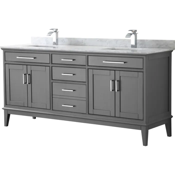 Wyndham Collection 72 Inch Double Bathroom Vanity In Dark Gray, White Carrara Marble Countertop, Undermount Square Sinks, And No Mirror WCV303072DKGCMUNSMXX