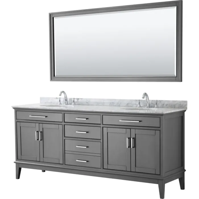Wyndham Collection 80 Inch Double Bathroom Vanity In Dark Gray, White Carrara Marble Countertop, Undermount Oval Sinks, And 70 Inch Mirror WCV303080DKGCMUNOM70