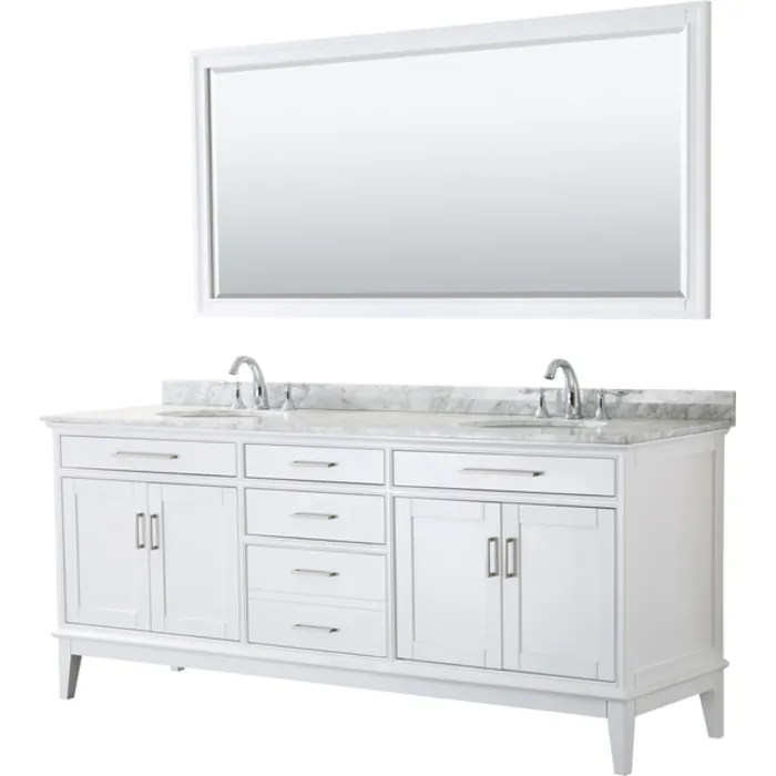 Wyndham Collection 80 Inch Double Bathroom Vanity In White, White Carrara Marble Countertop, Undermount Oval Sinks, And 70 Inch Mirror WCV303080DWHCMUNOM70