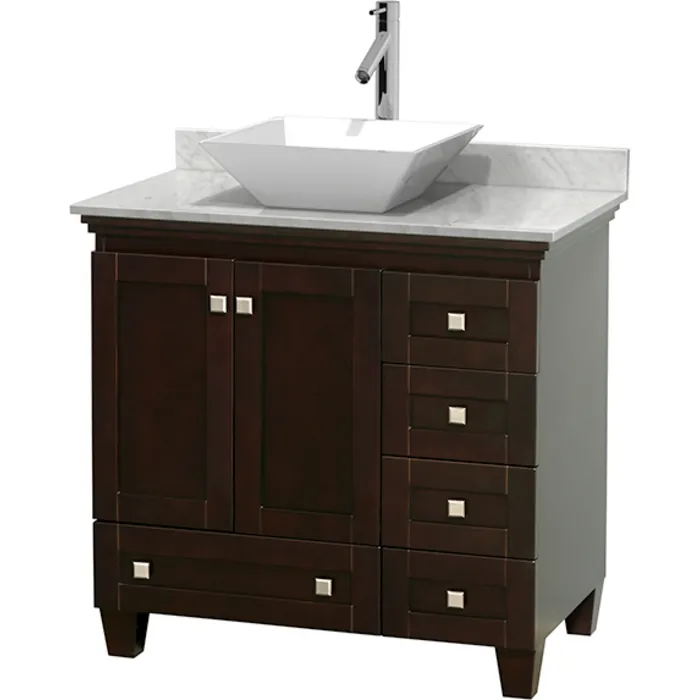 Wyndham Collection WCV800036SESCMD2WMXX 36 In. Single Bathroom Vanity In Espresso, White Carrera Marble Countertop, Pyra White Porcelain Sink, And No Mirror