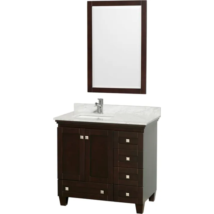 Wyndham Collection WCV800036SESCMUNSM24 36 In. Single Bathroom Vanity In Espresso, White Carrera Marble Countertop, Undermount Square Sink, And 24 In. Mirror