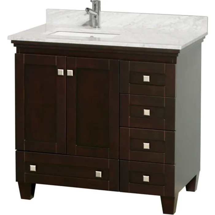 Wyndham Collection WCV800036SESCMUNSMXX 36 In. Single Bathroom Vanity In Espresso, White Carrera Marble Countertop, Undermount Square Sink, And No Mirror