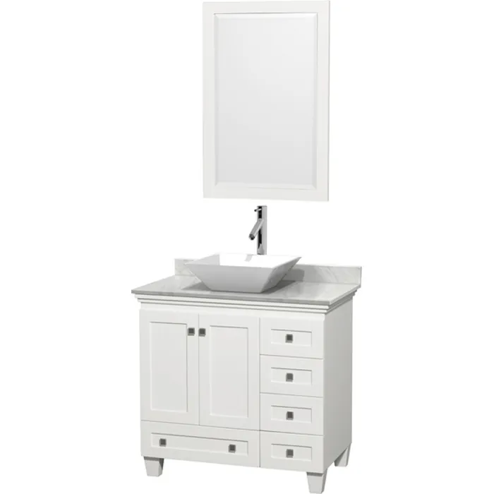 Wyndham Collection WCV800036SWHCMD2WM24 36 In. Single Bathroom Vanity In White, White Carrera Marble Countertop, Pyra White Porcelain Sink, And 24 In. Mirror