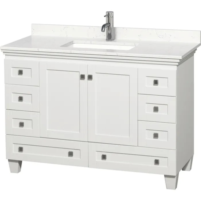 Acclaim 48 Inch Single Bathroom Vanity in White, Light-Vein Carrara Cultured Marble Countertop, Undermount Square Sink, No Mirror