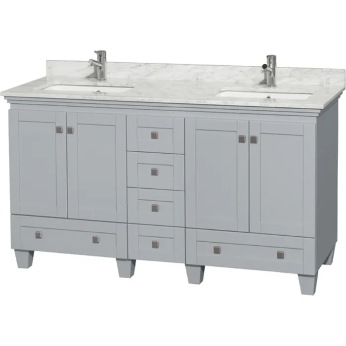 Wyndham Collection 60 Inch Double Bathroom Vanity In Oyster Gray, White Carrara Marble Countertop, Undermount Square Sinks, And No Mirrors WCV800060DOYCMUNSMXX