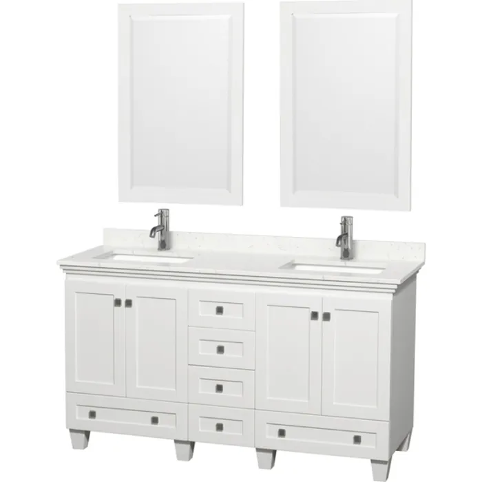 Acclaim 60 Inch Double Bathroom Vanity in White, Light-Vein Carrara Cultured Marble Countertop, Undermount Square Sinks, 24 Inch Mirrors