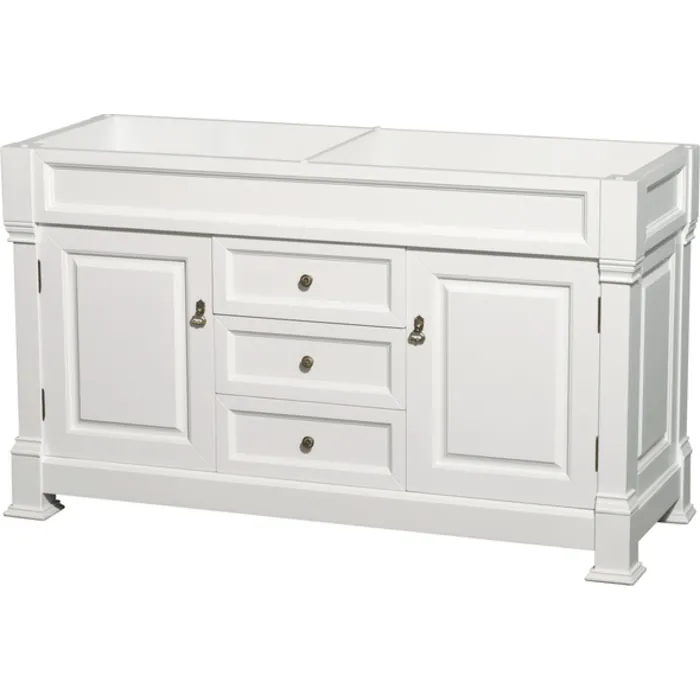 Andover 60 Inch Double Bathroom Vanity in White, No Countertop, No Sink, and No Mirror