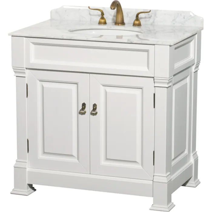 Andover 36 Inch Single Bathroom Vanity in White, White Carrara Marble Countertop, Undermount Oval Sink, and No Mirror