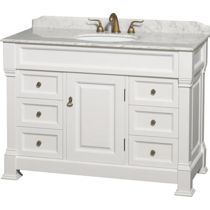 Andover 48 Inch Single Bathroom Vanity in White, White Carrara Marble Countertop, Undermount Oval Sink, and No Mirror