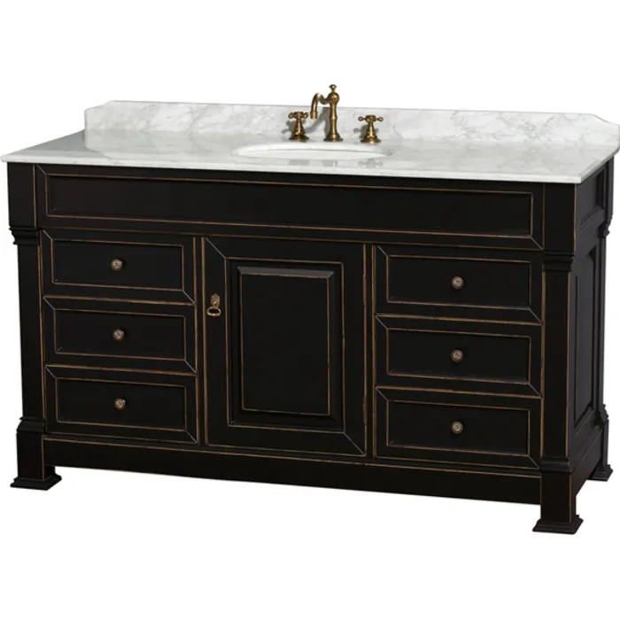 A classic addition to the Wyndham Collection catalog, the beautiful Andover bathroom vanity series represents an updated take on traditional styling. The Andover is a keystone piece with strong, classic lines and an attention to detail. The vanity is hand carved and stained and comes with a finish choice of black, dark cherry, or white. Choose a natural stone countertop in a variety of different options cut with a beautiful beveled edge. Available in a range of single or double vanity sizes to fit any bathroom.